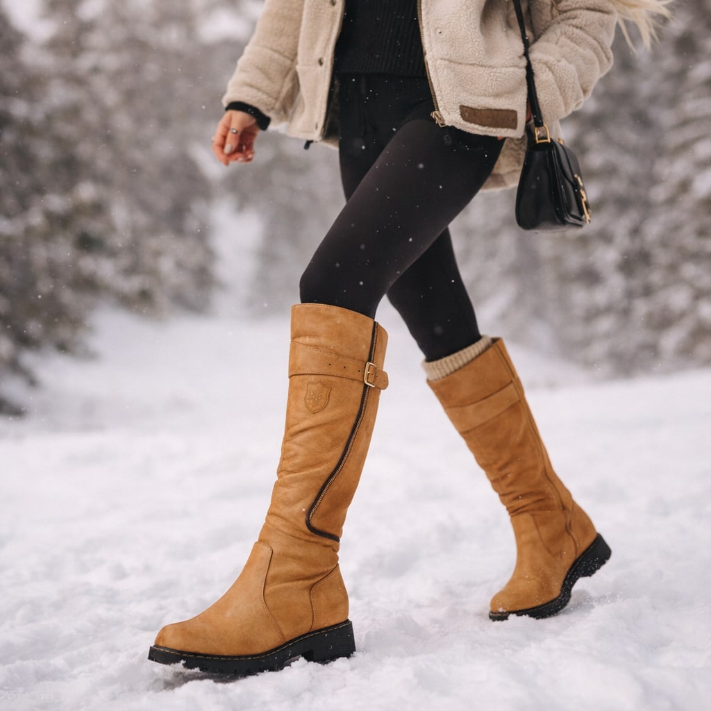An extended shaft with a close, structured fit reduces wind exposure along the leg while maintaining consistent support from ankle to calf. Smooth leather with an insulated lining and cushioned footbed softens interior contact and helps retain warmth without compromising shape.