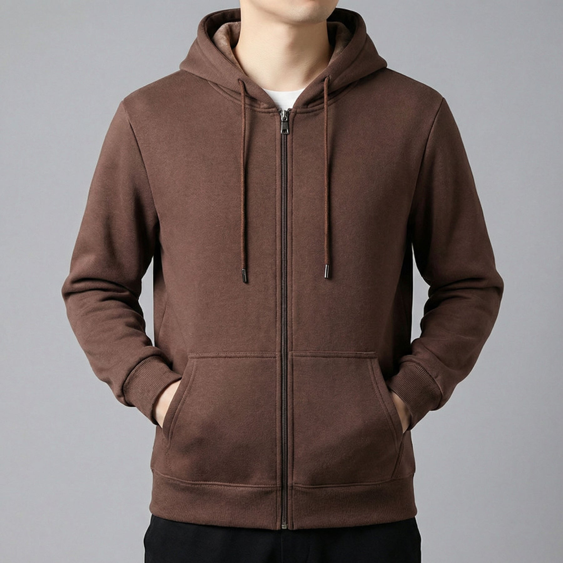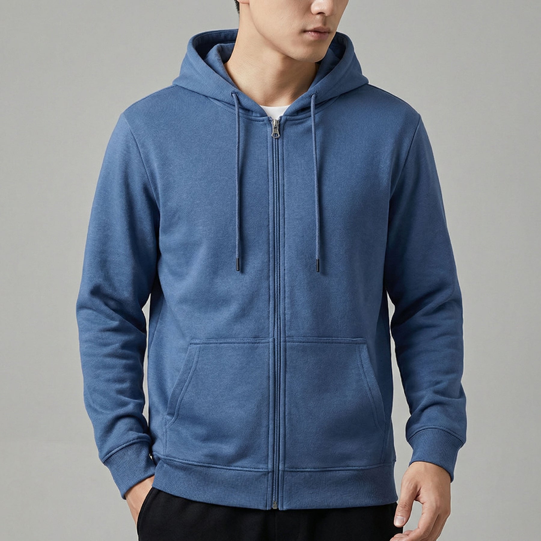 Crafted from premium cotton, this hoodie delivers a soft, breathable feel that offers gentle warmth without weighing you down. Clean lines, a balanced zip-front design, and a calm neutral tone make it an easy off-duty layer that keeps casual moments feeling intentional, composed, and quietly refined.