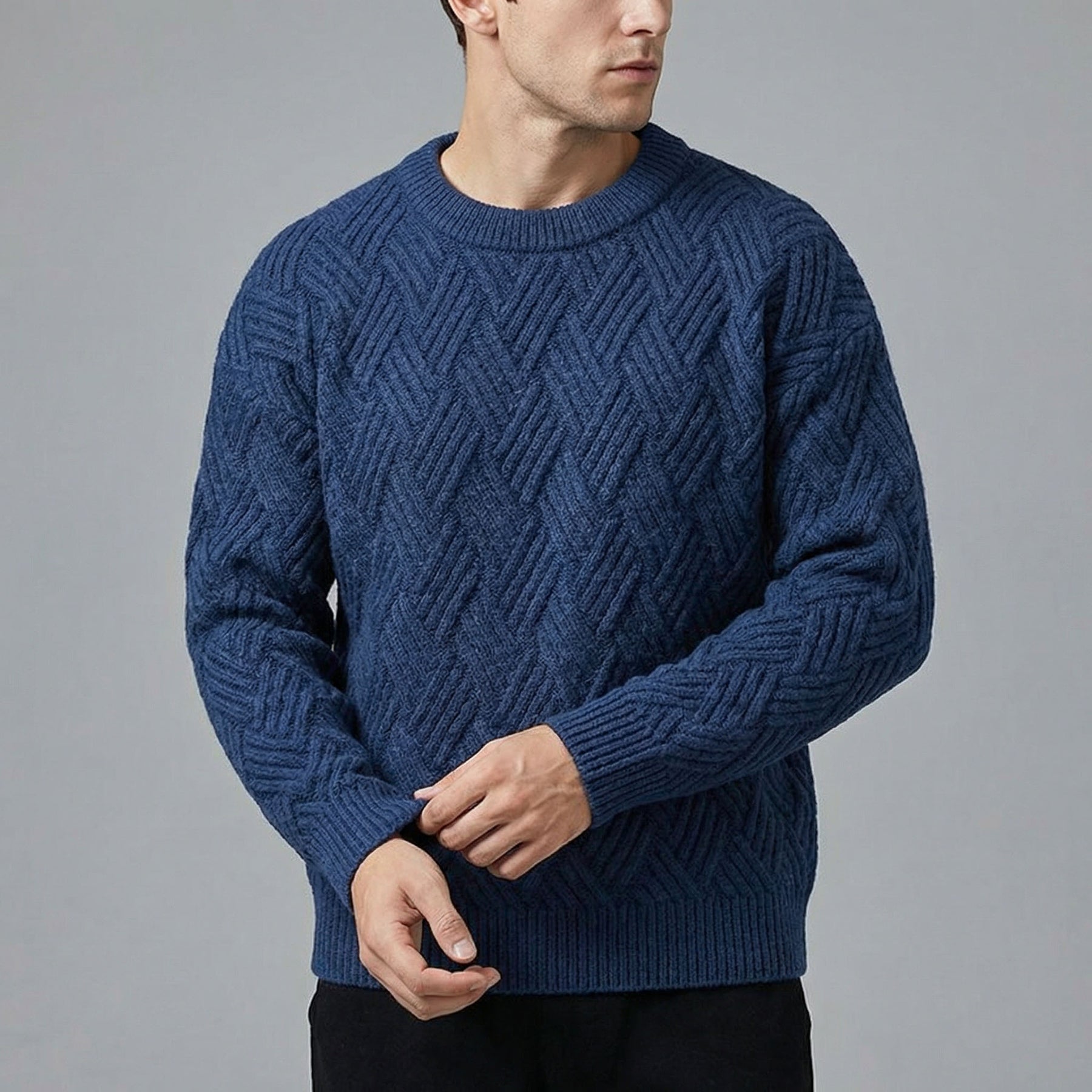 Crafted from a luxury knit construction, this sweater delivers a soft, gently warm feel that sits comfortably on the body without feeling heavy or bulky. The textured knit, classic crew neckline, and balanced proportions create a calm, intentional look that makes everyday dressing feel settled, mature, and quietly composed.
