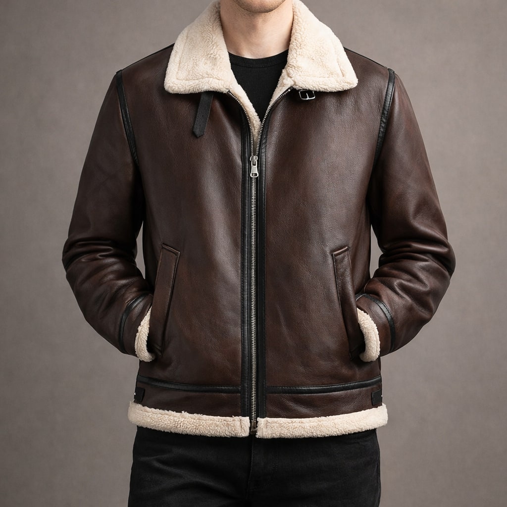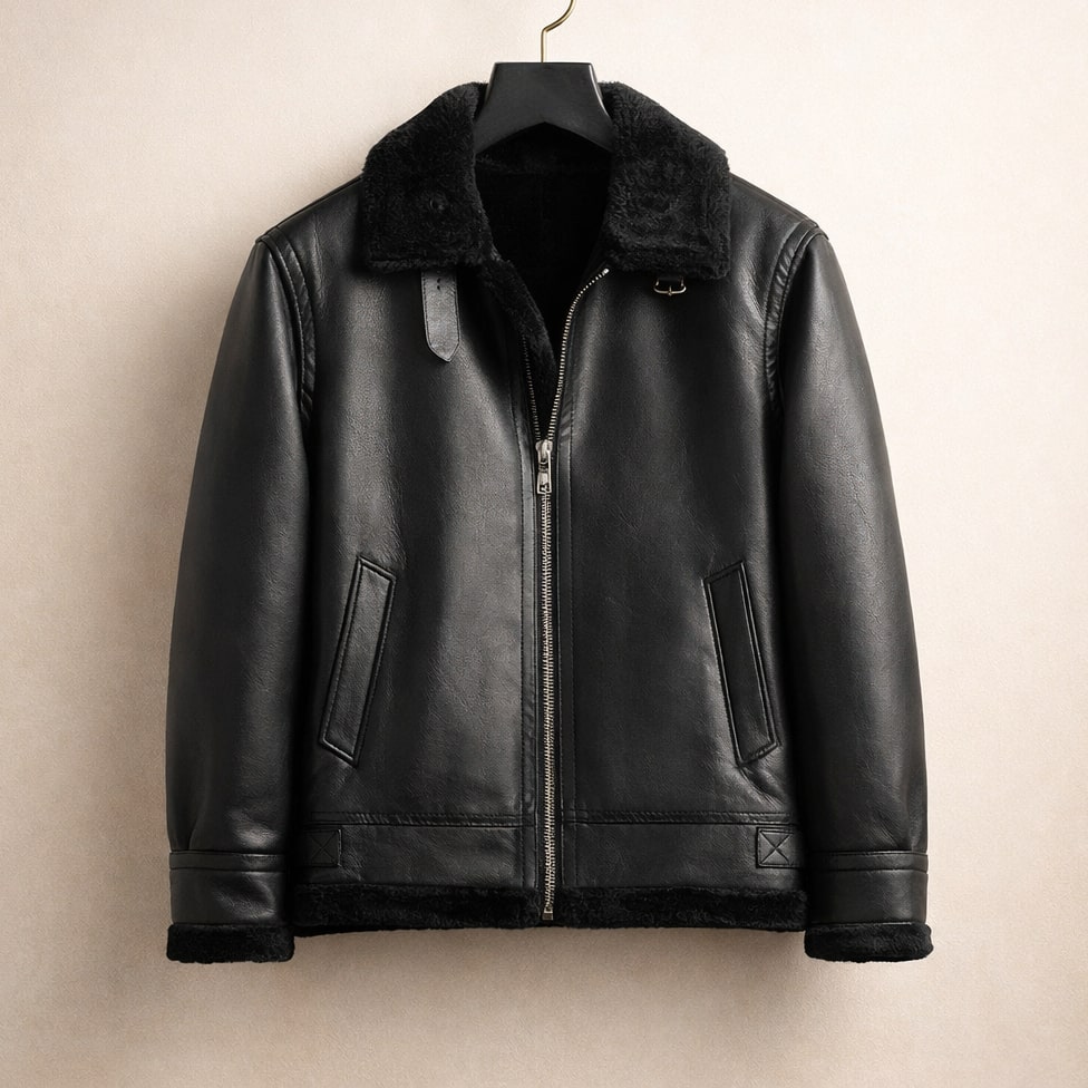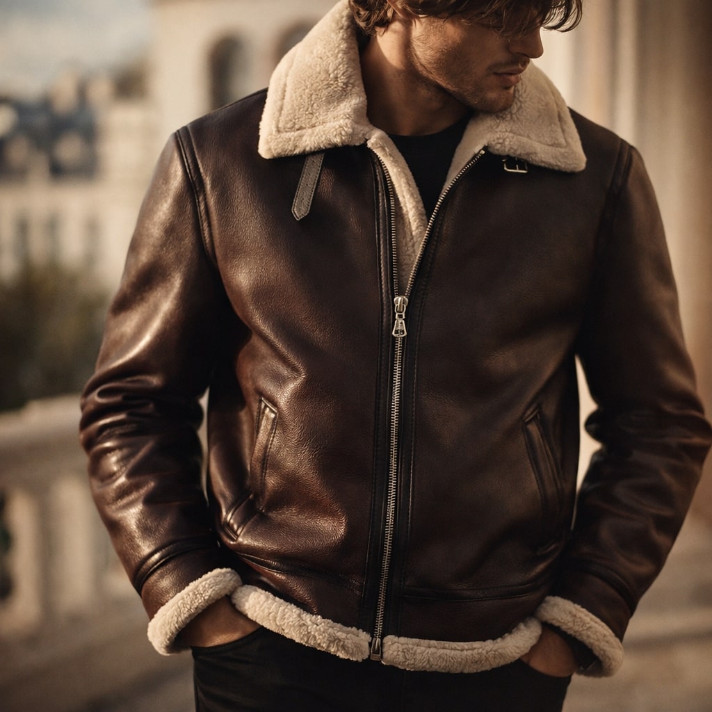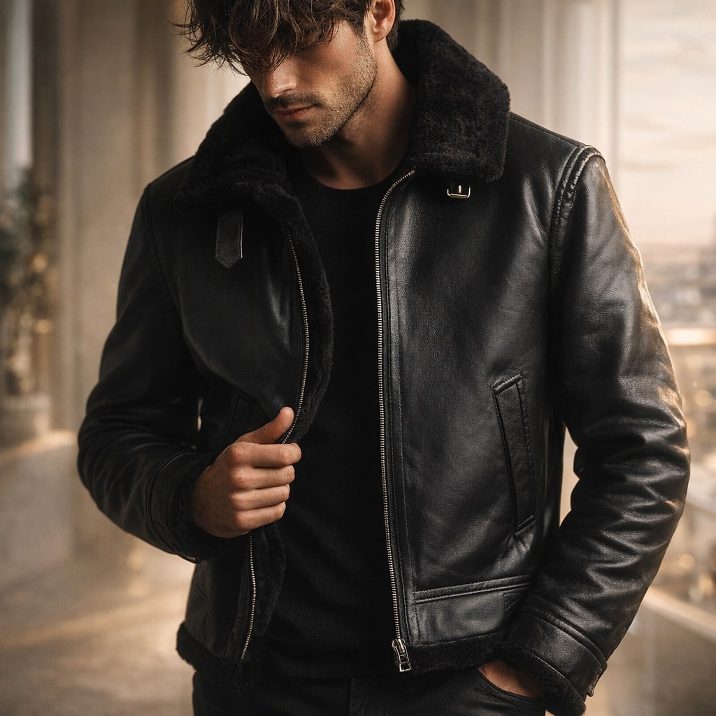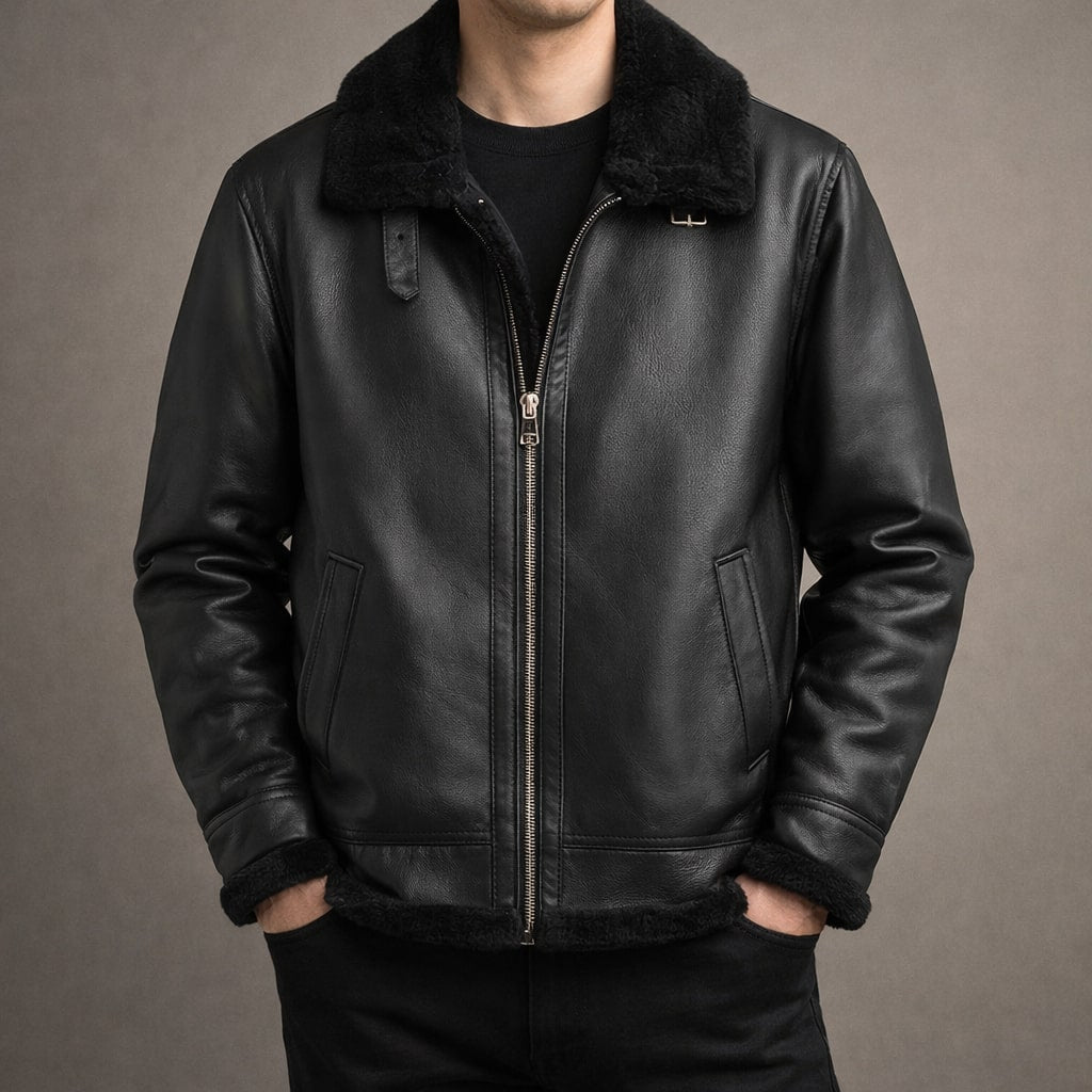 A compact, structured build with a close fit through the body blocks wind exposure while maintaining a clean, balanced shape. A smooth leather exterior paired with a plush interior lining and structured collar delivers reliable warmth and a soft feel against the skin without stiffness during extended wear.